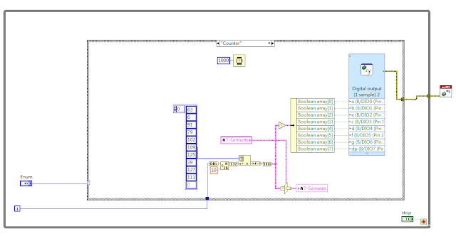 [ LabVIEW實作 - NI myRIO基礎篇 ] 用Enum實現七段顯示器的 4 種情境 (手動點選、反轉、計數、點擊加一)