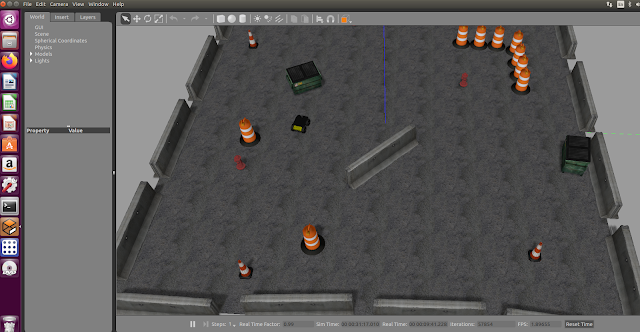 依據這個RVIZ檔案,可以看到模擬的雷射與在Gazebo環境中的Husky移動路徑。